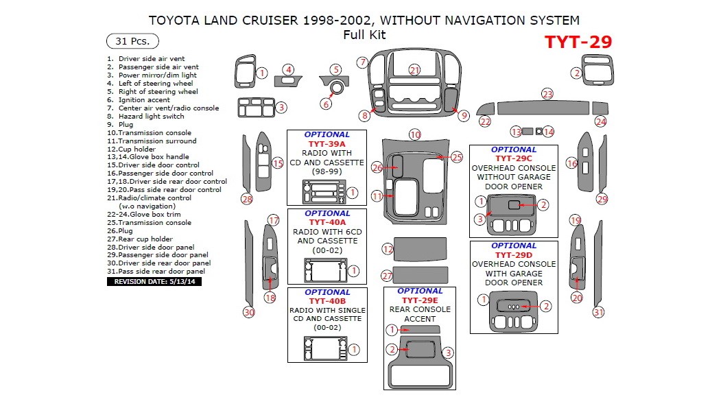 toyota cruiser 1998 2002 land kit interior pcs navigation drive without system hand right 1999 2001 2000